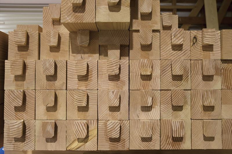 自然のままの木材は、育った環境などにより同じ材種、同じ太さであっても強度がバラバラですが、「構造用集成材」は全てが同じ強度を保つように作られるので、ばらつきがないだけでなくその強さを数値化できることが特徴です。