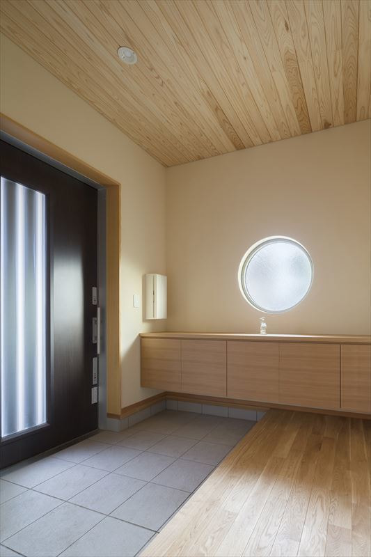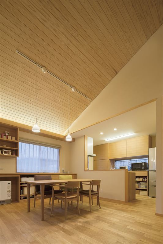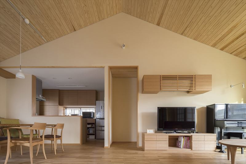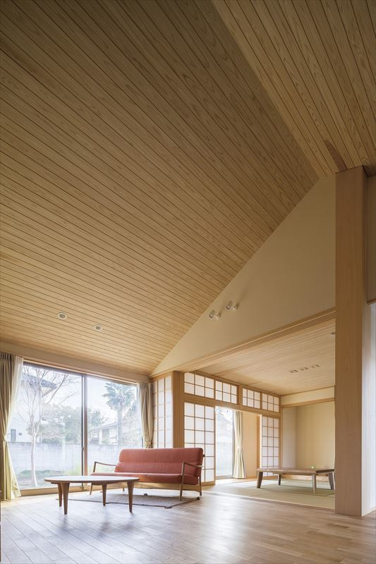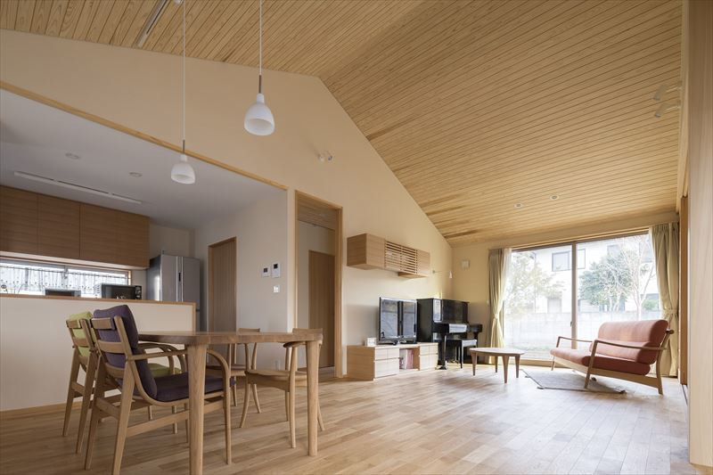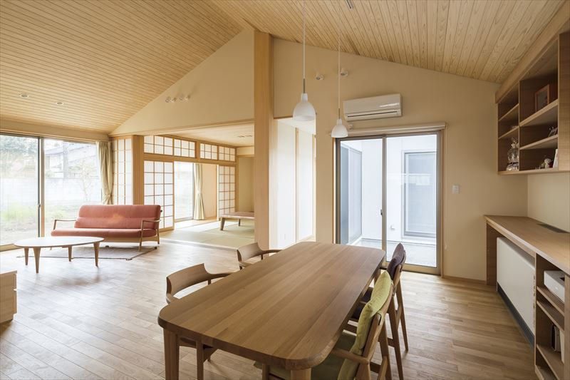 自然素材で仕上げ、通風・採光を考えた大きなリビングのある家です。