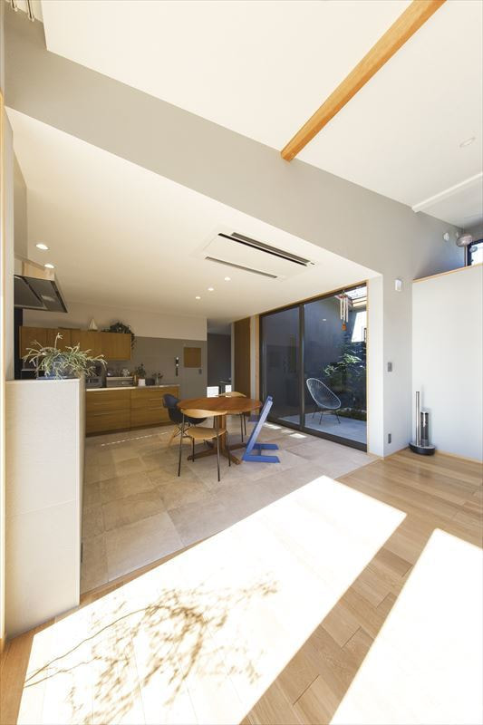 キッチンからは、プライベートが確保された中庭も確認できる。