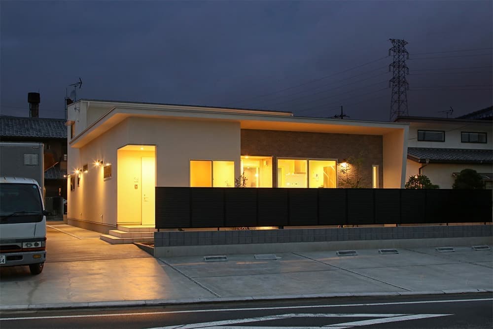 夜景が綺麗です。正面の壁はタイルが張ってあります。