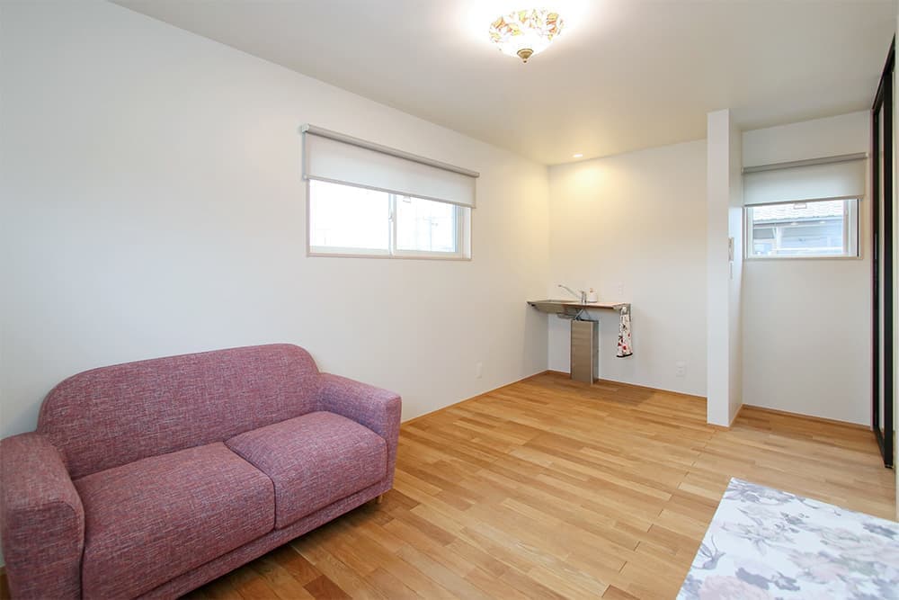 自然素材で仕上げました。木部(床・天井)はすべて亜麻仁油を塗っています。