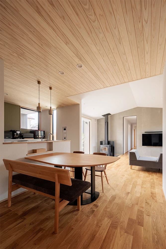 薪ストーブとリビングの勾配天井をご希望のM様。