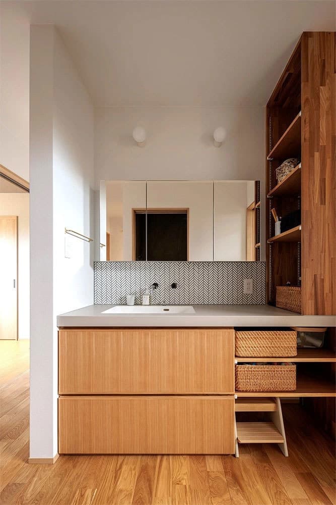 ・水回り・ファミリークローゼットを隣接させた効率の良い家事動線