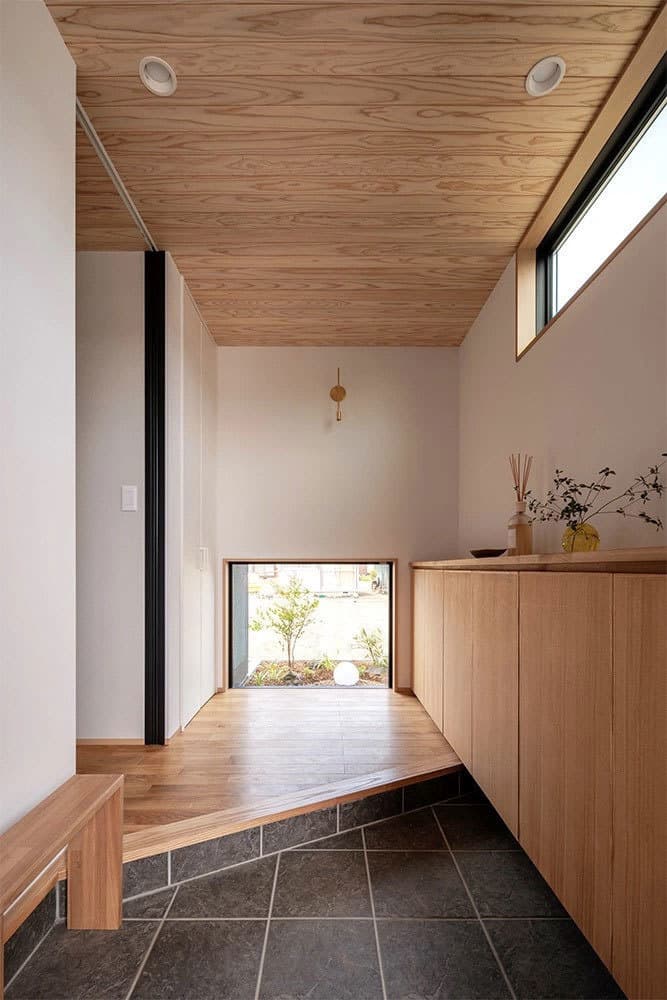 土間と中庭がつながるヌックのある平屋の家