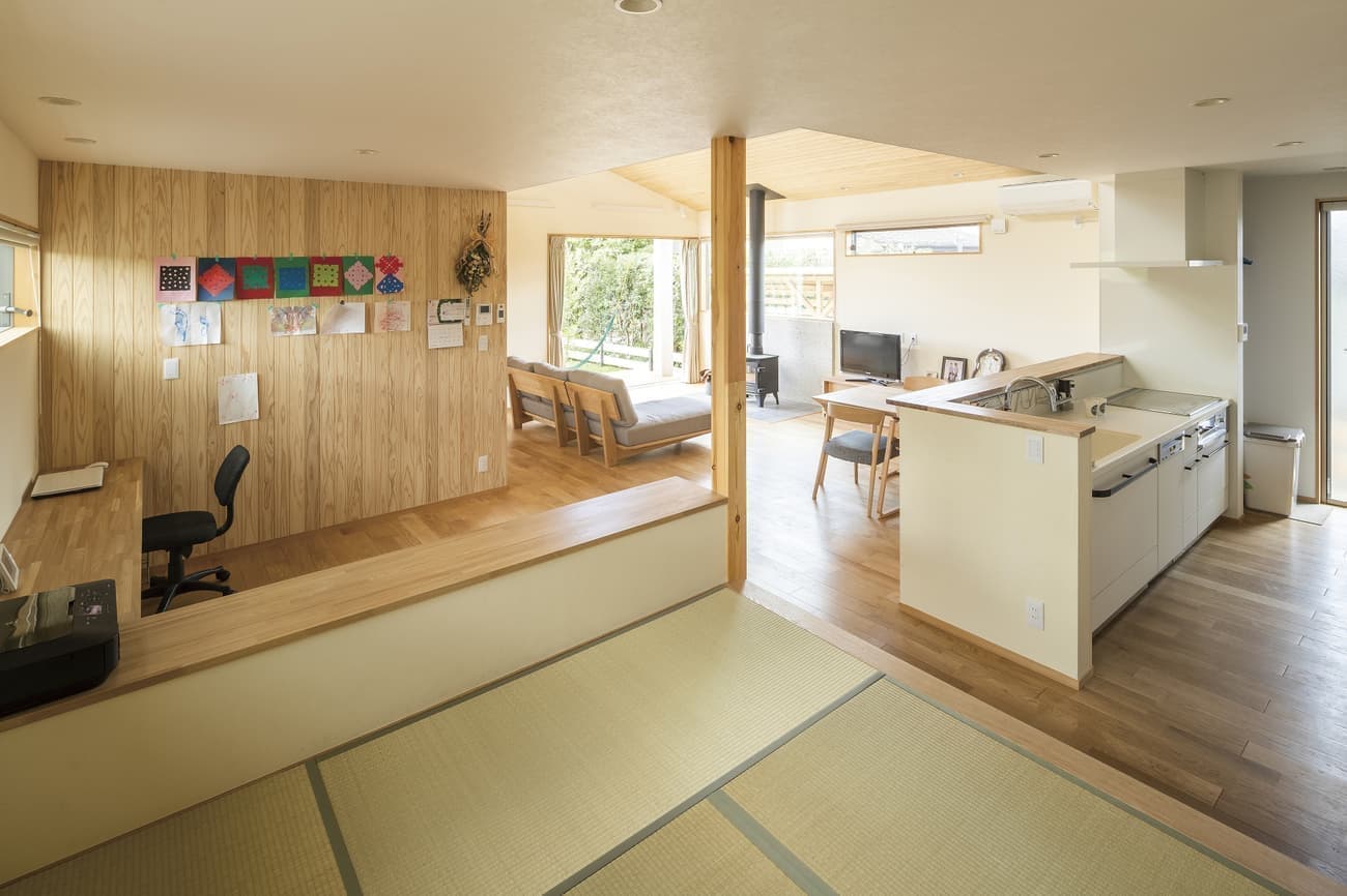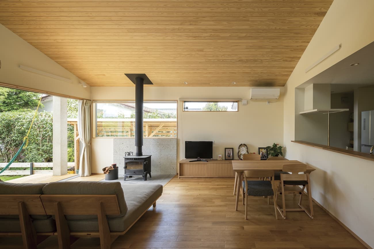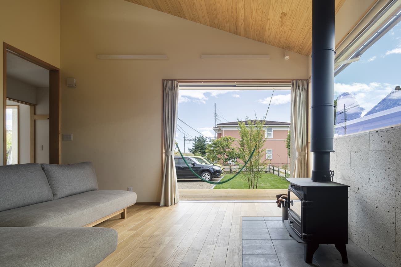 縦長の土地に計画し、薪ストーブと平屋がご要望のK様。