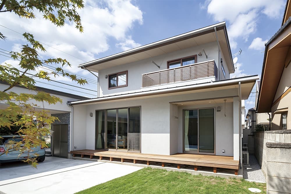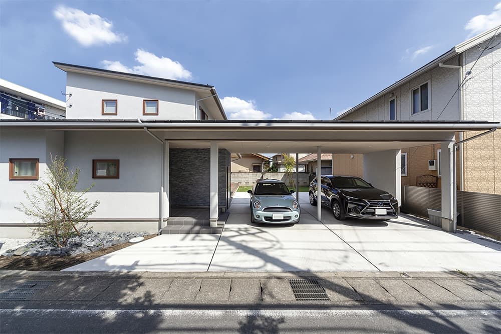 大屋根のガレージがある家