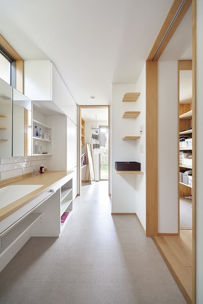 洗面・洗濯・室内干し・外干しにつながる動線