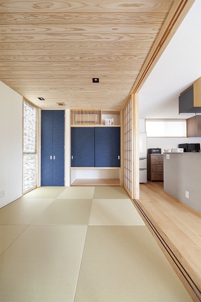 TVの壁はエコカラット、左側の扉を開けるとリビング収納です