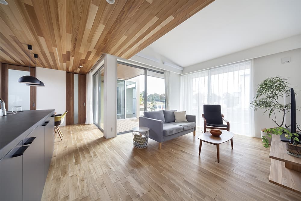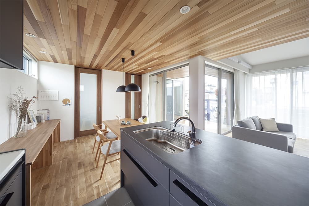 ペニンシュラキッチン横のダイニングテーブルは作業効率抜群!