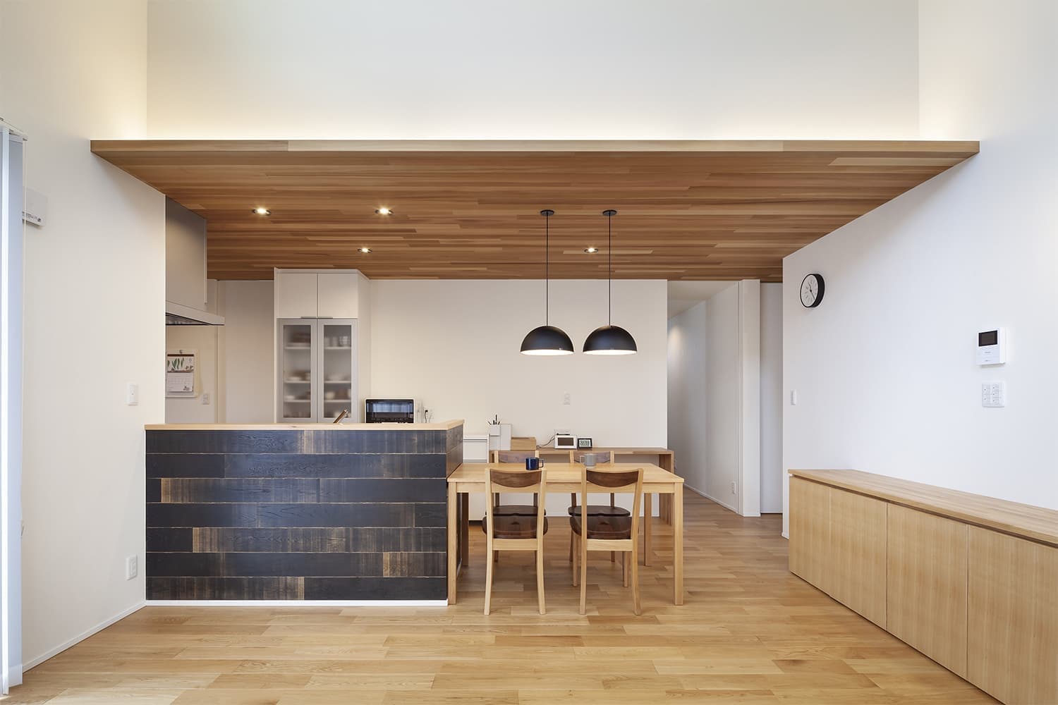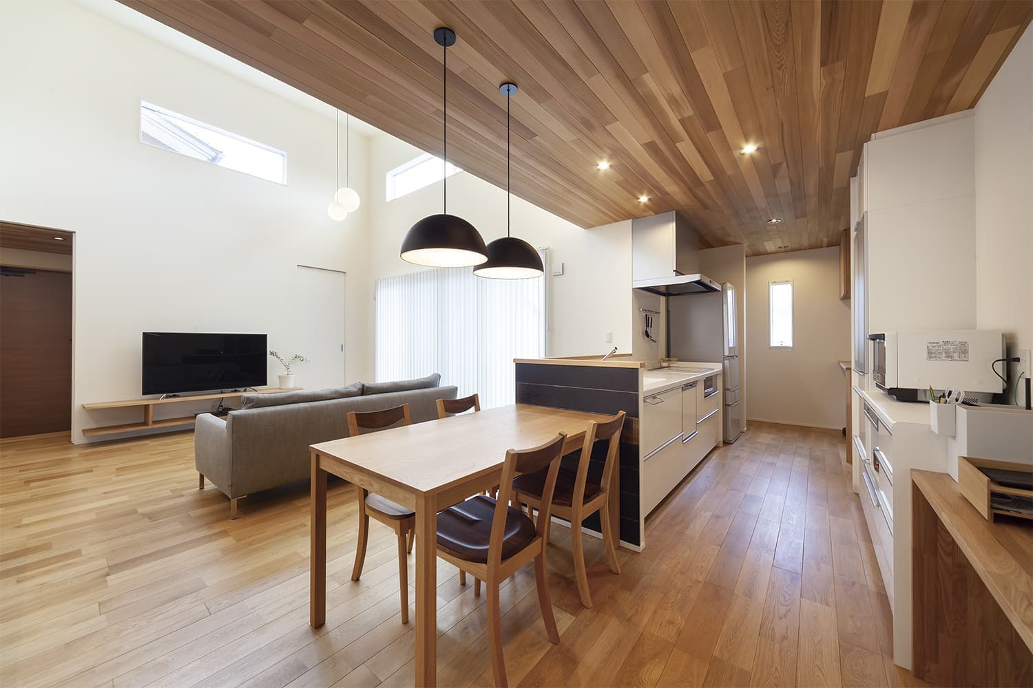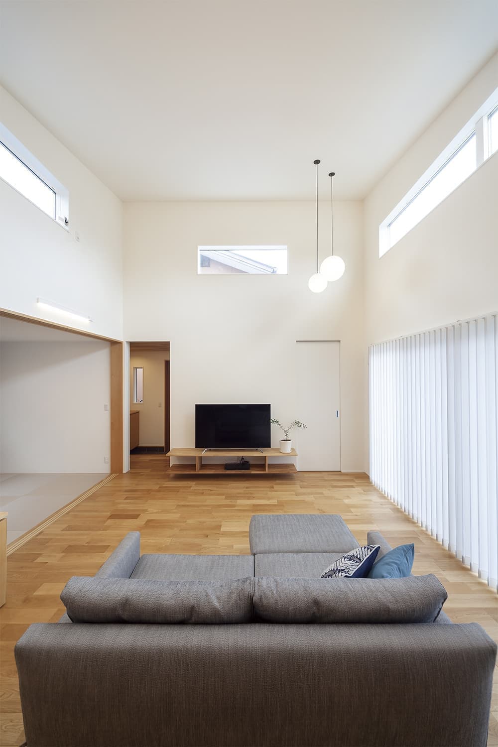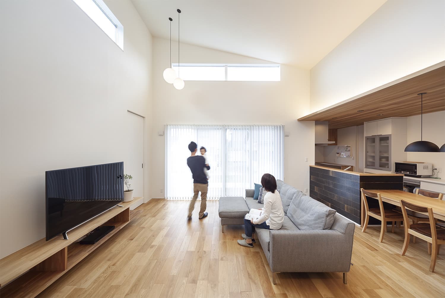 リビング天井を高くし、上部に明り取り・通風を考慮したパッシブデザイン。