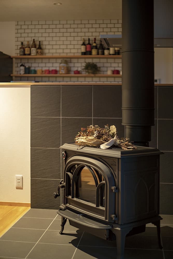 ご主人お気に入りのLDKのアクセントにもなる薪ストーブ。