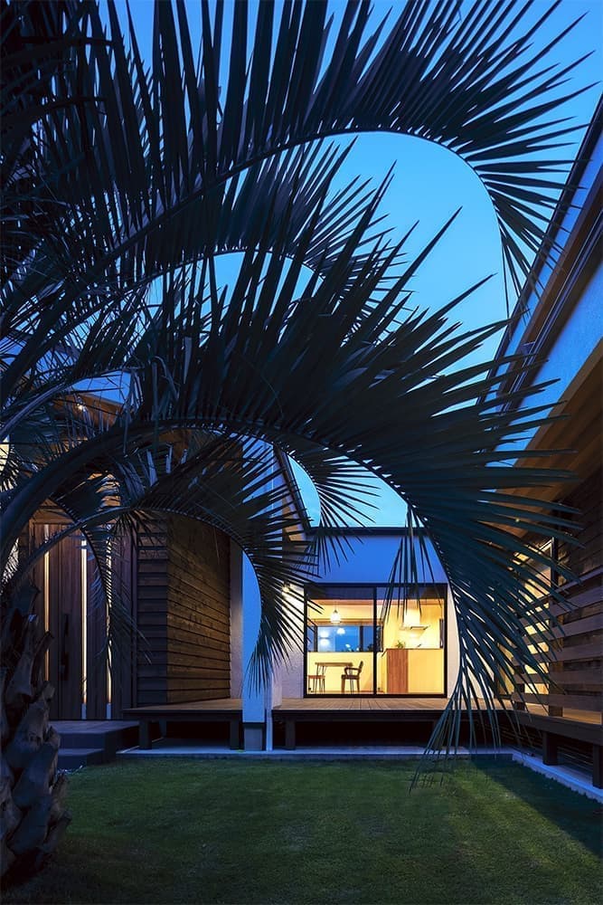 中庭のあるコの字の家