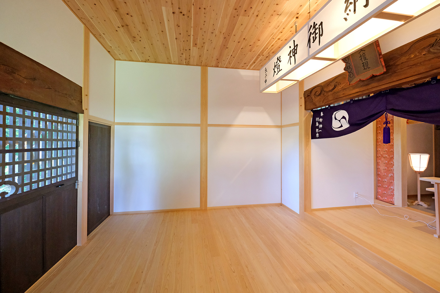 宿大類町熊野神社建替 建築地 群馬県高崎市 設計/施工 関工務所 高崎市宿大類町の公園の中に290年前に建立された宿大類町熊野神社あります。平成30年の台風の直撃により屋根が陥没落下し応急補修がされましたが劣化の進行が早く、令和4年の氏子総会で建替案が承認され大工が社員としている建設会社を選定した結果、弊社が実績等を認められ設計施工で工事に携わることができました。地域の皆様に長く愛されている神社の再建に携われたことに深く感謝いたします。 外部壁漆喰壁+板張り土台 クリ材 柱 ヒノキ材 梁 杉、松材 内部床 桧無垢材 内部天井 杉無垢材 ,http://gdata.youtube.com/feeds/api/videos/ACerU7Yc5Fw,,{"playerWidth":"640","useCustom":false,"autoPlay":false,"autoLoop":false,"autoNext":false,"quality":"default","qualityName":"自動","coverImage":""} 前の作品事例 次の作品事例