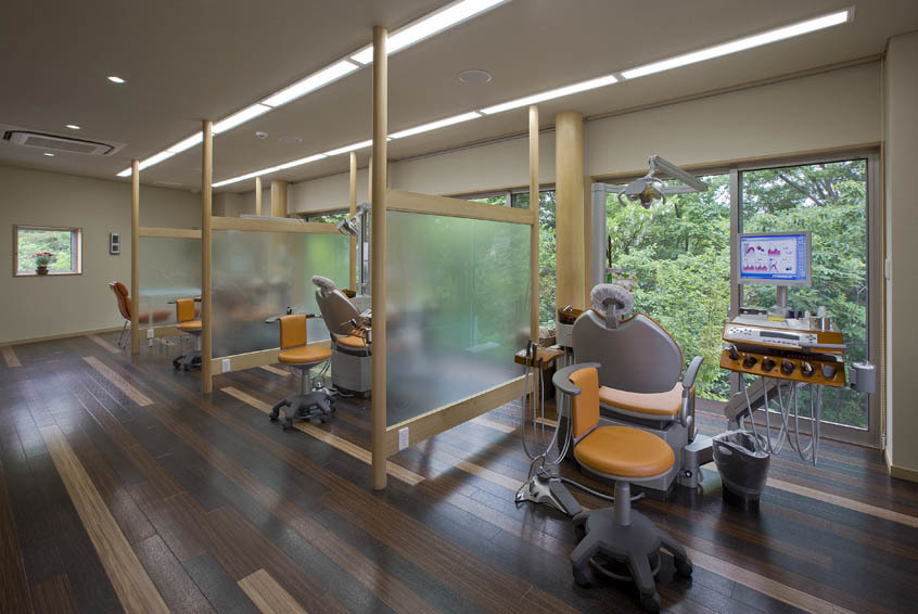 診察室は開放的な大窓を設け緑溢れる景色が広がります。