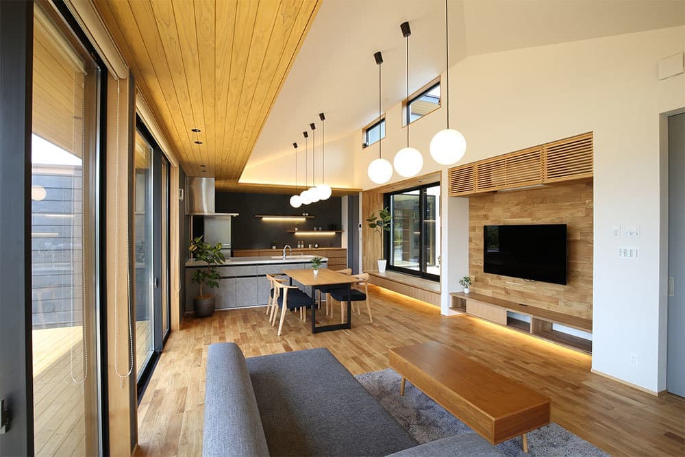 自然を家の中から違和感なく取り込み、どこまでも広がりを感じる開放感と気持ちのいい空間。