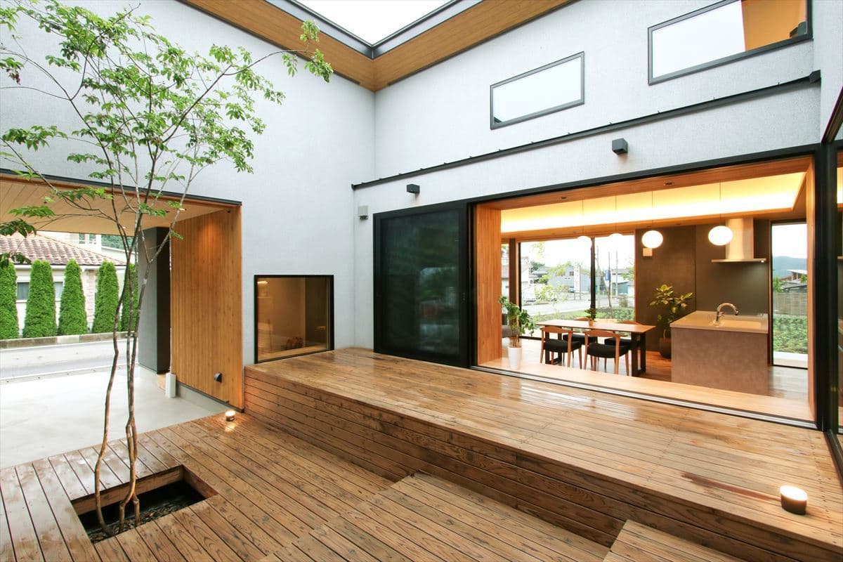 「ソト」と「ウチ」をつなぐ広いウッドデッキ
