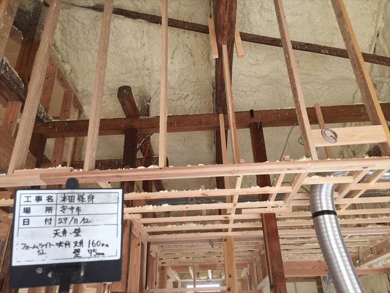 また、大規模改修と合わせて、更に壁の中の断熱材を最新の高性能ものにすることで、格段に断熱性能が良くなります。
