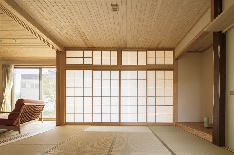 自然素材で仕上げ、通風・採光を考えた大きなリビングのある家です。