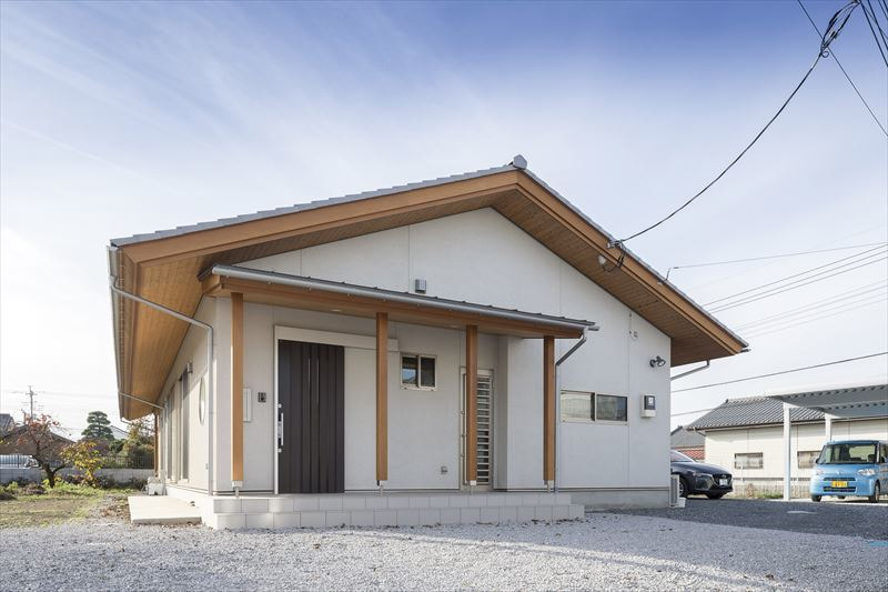 アースカラーが好きで、温もりを感じられれ、落ち着いた空間の平屋と、さらに道を挟んでご実家もあることから、家から実家の気配も感じられるようにしたいと希望されたF様。