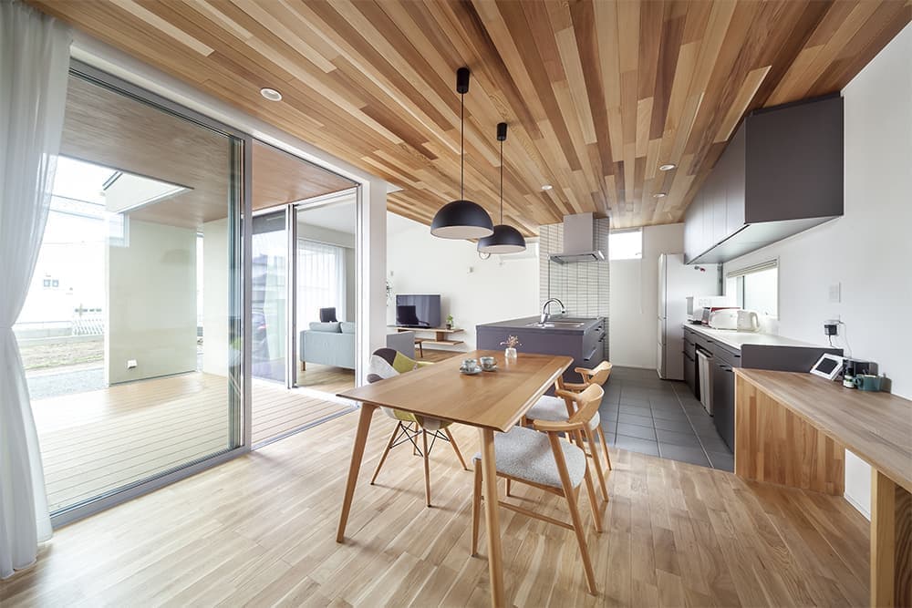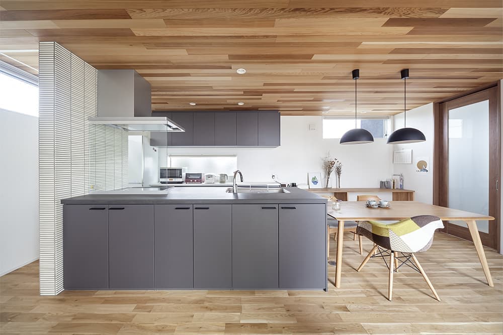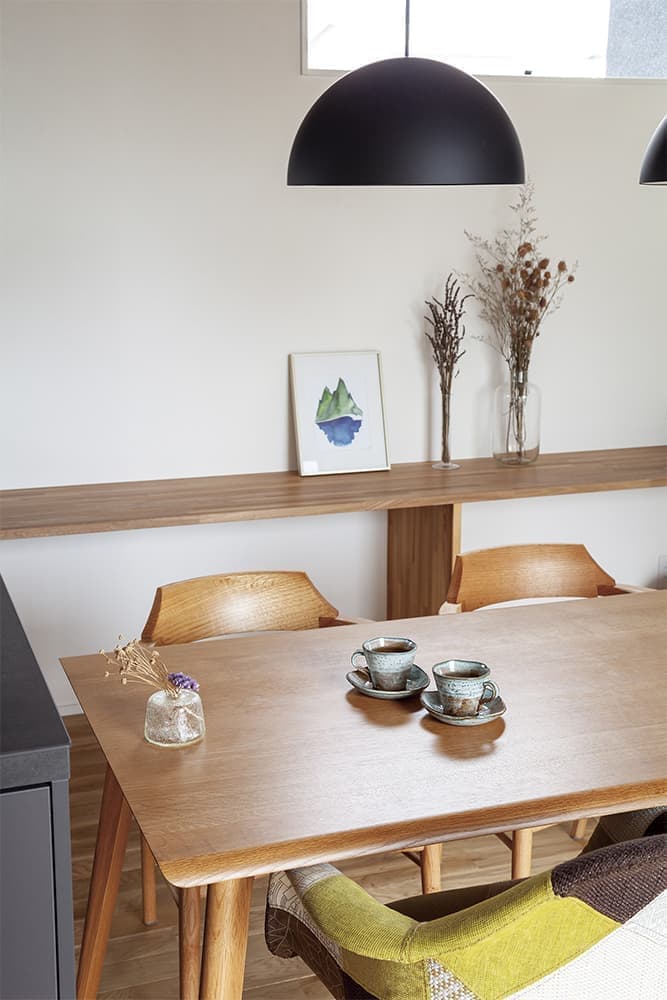 ペニンシュラキッチン横のダイニングテーブルは作業効率抜群!