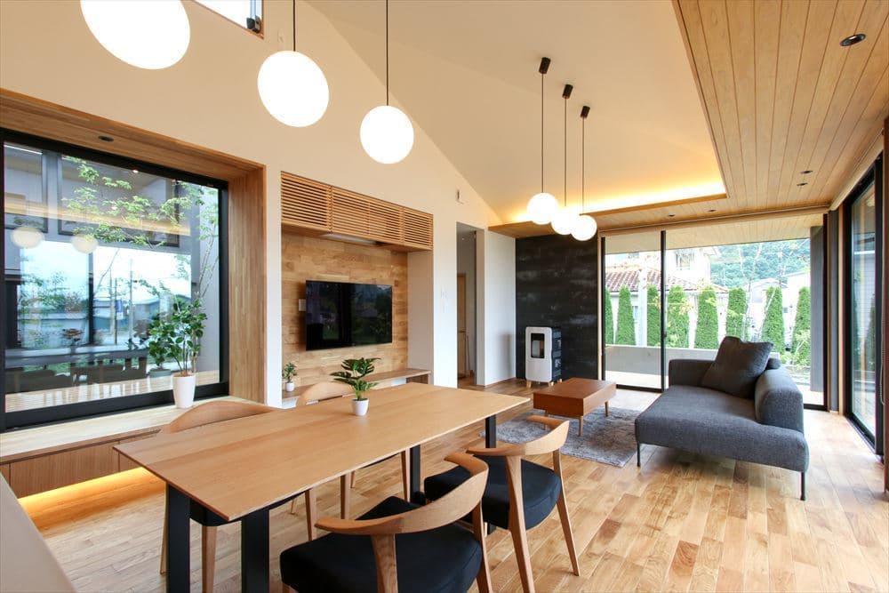 自然を家の中から違和感なく取り込み、どこまでも広がりを感じる開放感と気持ちのいい空間。