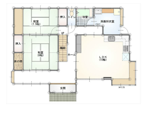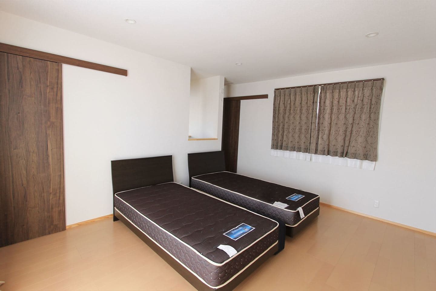 北側の和室を祖父母(両親)の部屋として考え、ご高齢なこともあり洋室としています。ご自身の寝室は、かつて3人のご子息が使っていた部屋を利用、子供達が帰省してきたときの為に客間として畳敷きにしました。また、ご家族全員が集まると15人ぐらいになるとのことで、現状のLDKを広げたいとの要望から、階段・廊下部分をLDKと一体化させることで、広い空間を実現。構造躯体の補強考えながら、必要な部分には見せる柱を考えました。