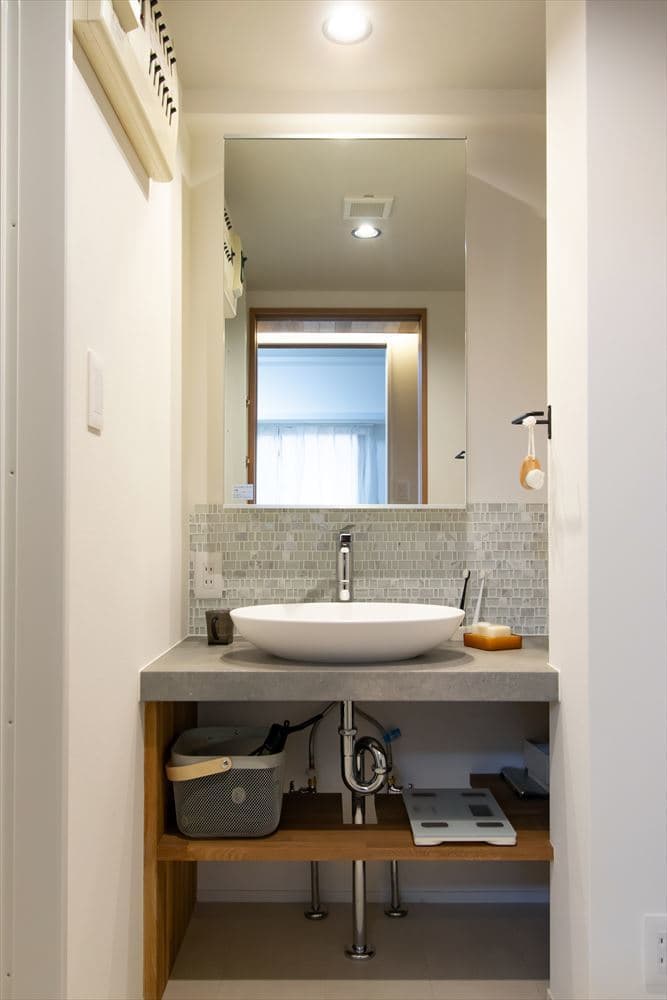 また床・壁・天井の仕上材もご希望の素材で新しくし床はナラ無垢材、壁の一部は石やタイルを使い、天井の一部も無垢材のレッドシダーを張り一部は躯体コンクリートを剥き出しにして素材の質感とマンションの1室であることを感じられる内装になりました。