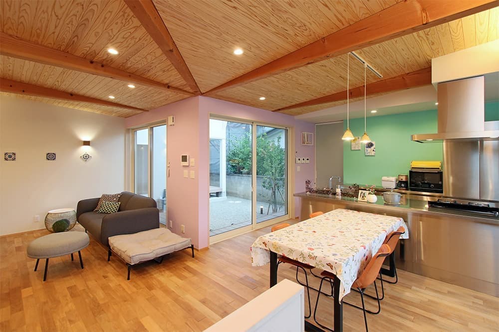 中庭のある2世帯住宅で自然素材だけで仕上げました。