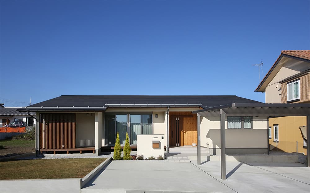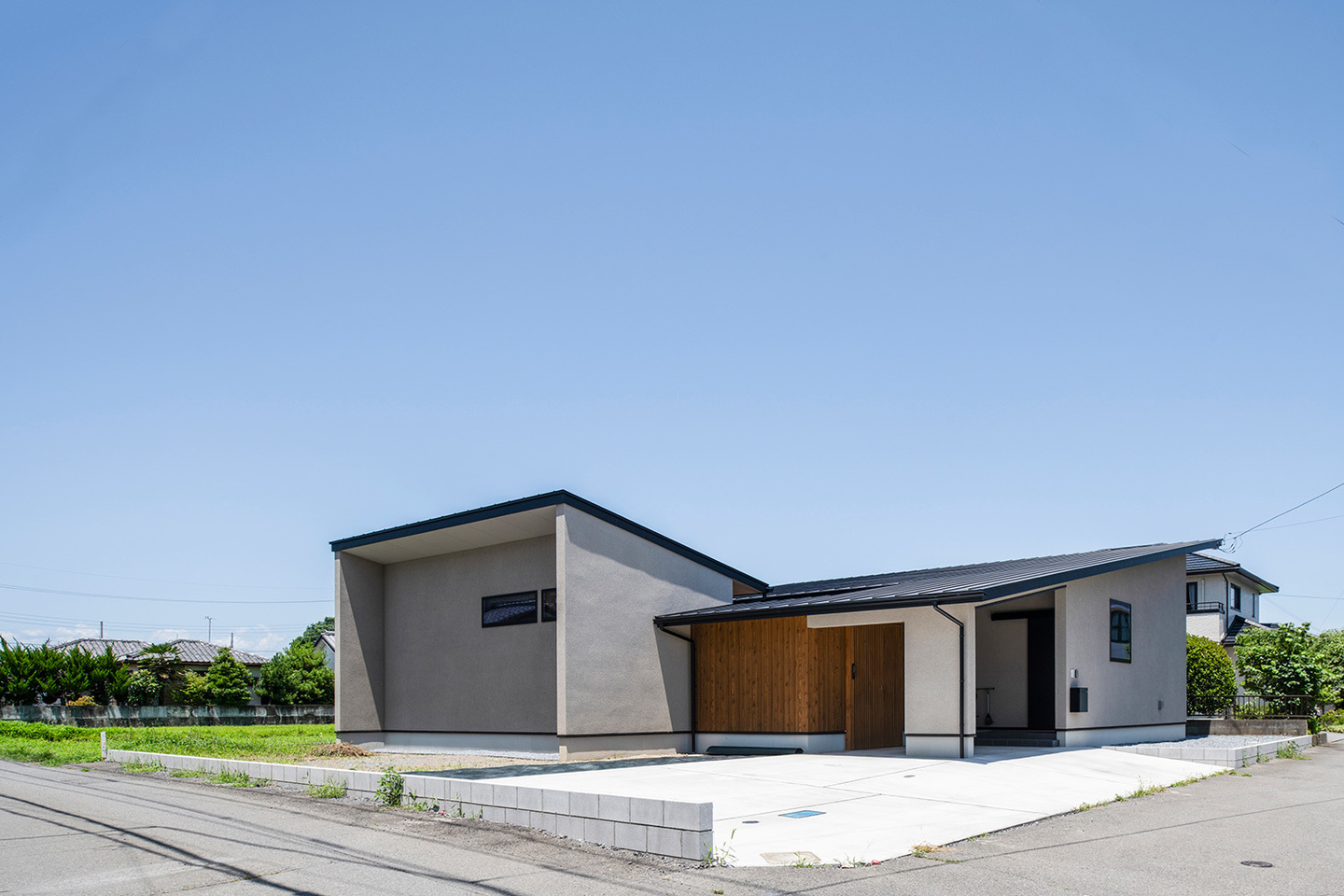 これらの特徴を最大限に生かして、お客様のご要望やこだわり、敷地条件などを考慮して関工務所が提案して完成した群馬県内における「平屋」の家の作品事例です。