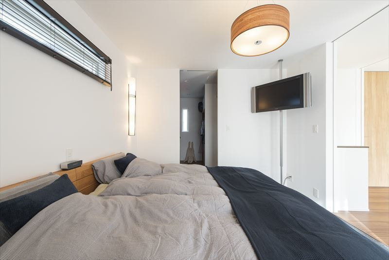 様々なところにお客様のセンスを感じ、それを当社の技術力・提案力で形にした「ヘリンボーンの床と浮遊する階段をもつ家」が完成した。